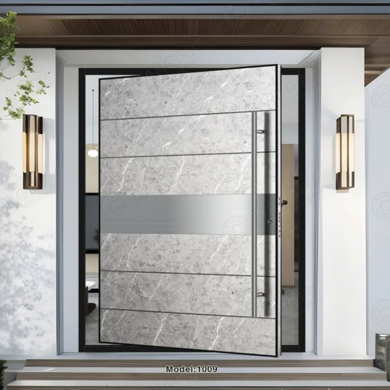 工場直販のハイエンド防音・盗難防止鋳造アルミドア、偏心ドア、ハイエンドカスタムアルミプレートドア、偏心ドアシステムドア、ヴィラ