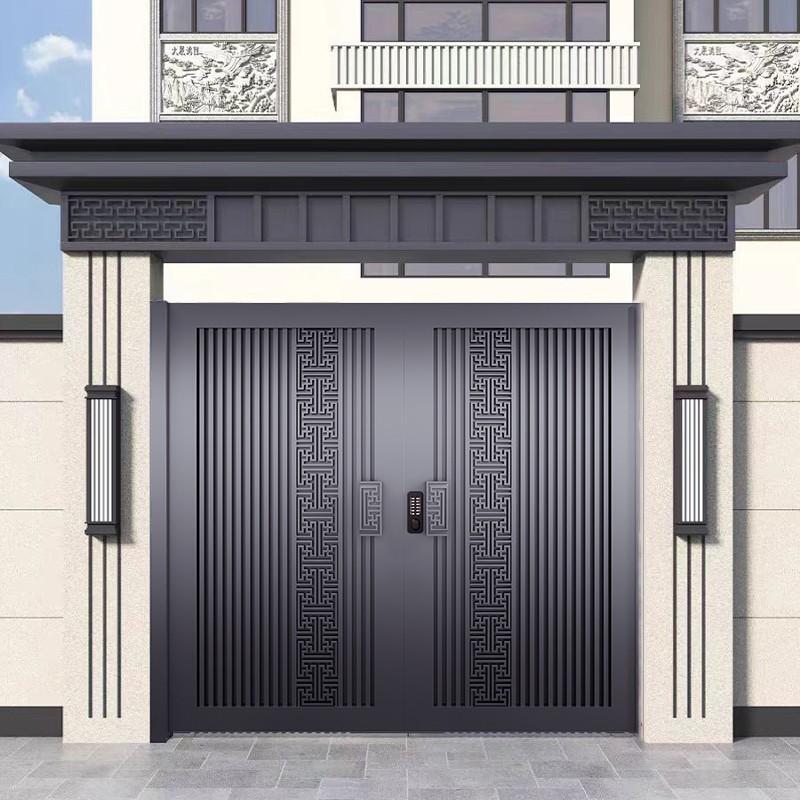アルミニウム合金ヴィラ中庭ゲート、田舎の屋外アルミニウムアート彫刻中庭ゲート、新しい中国風の両開き自作ドア