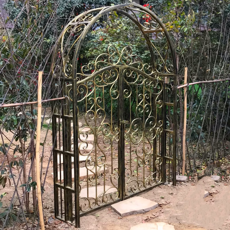 ヨーロッパの庭のドア、アーチ型フラワーラックドア、錬鉄製の中庭ドア、屋外のつるラック、庭の小さなドア、ヴィラガーデニングドア