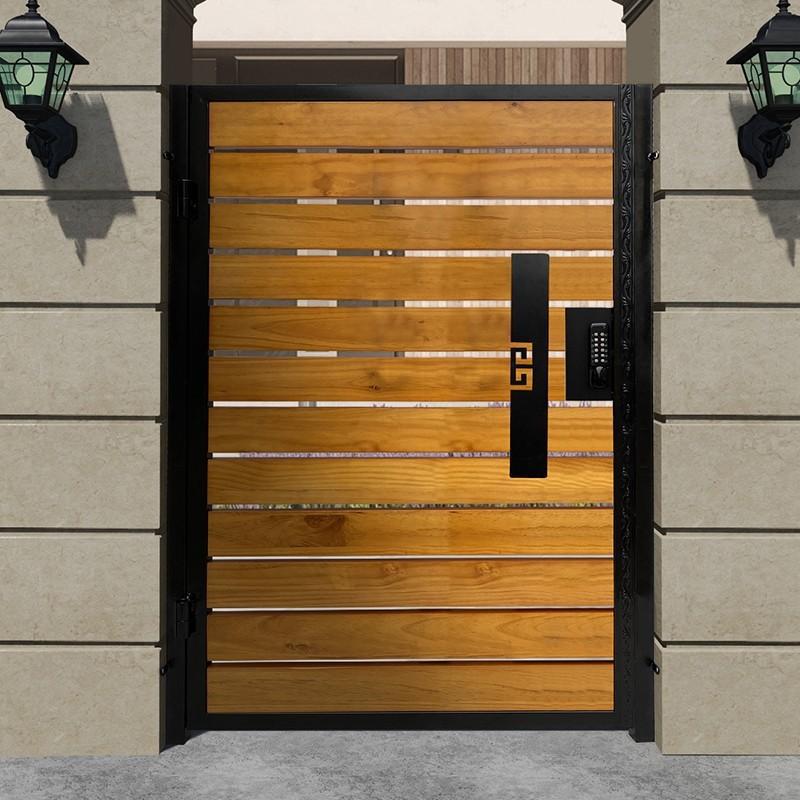 自作住宅アルミ合金木目調ヴィラゲートステンレス鋼屋外中庭ゲート亜鉛メッキ鉄木目調塗装ゲート