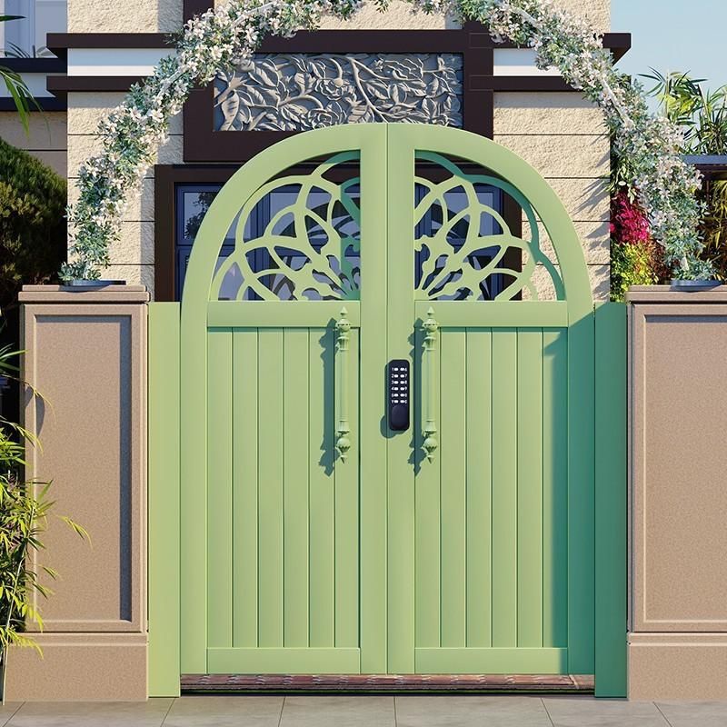 アルミ合金ヴィラゲートガーデン屋外シングルおよびダブルドア鉄中庭ドアカントリーステンレス鋼フレンチアーチ