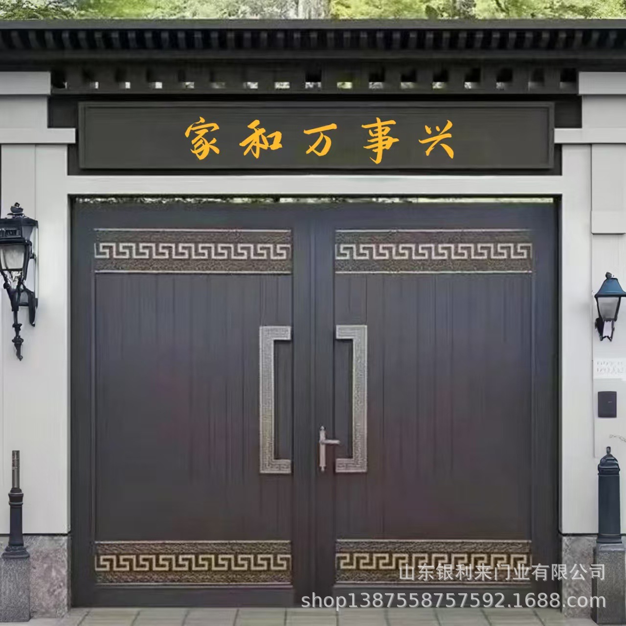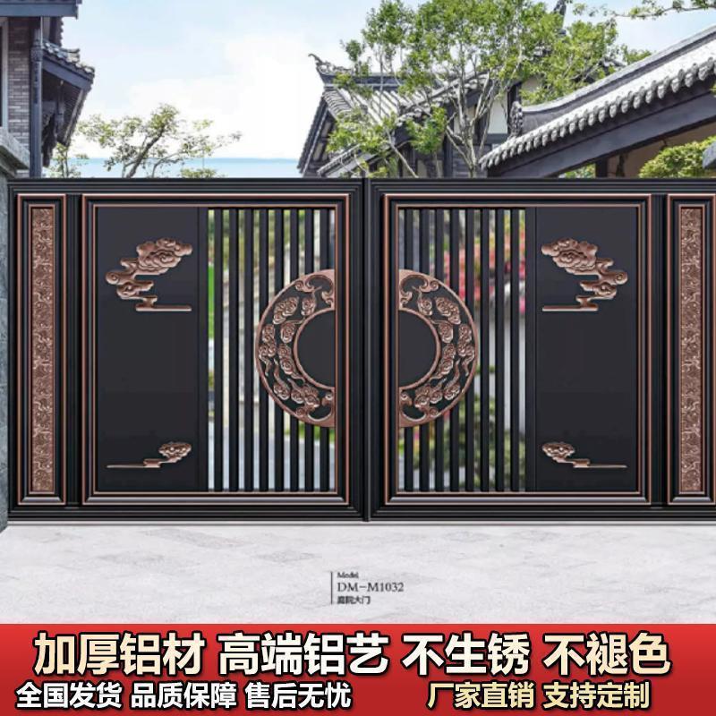 新しい中国風の中庭ゲートアルミアート彫刻ヴィラゲート屋外庭ゲート農村自作住宅両開きドア電気