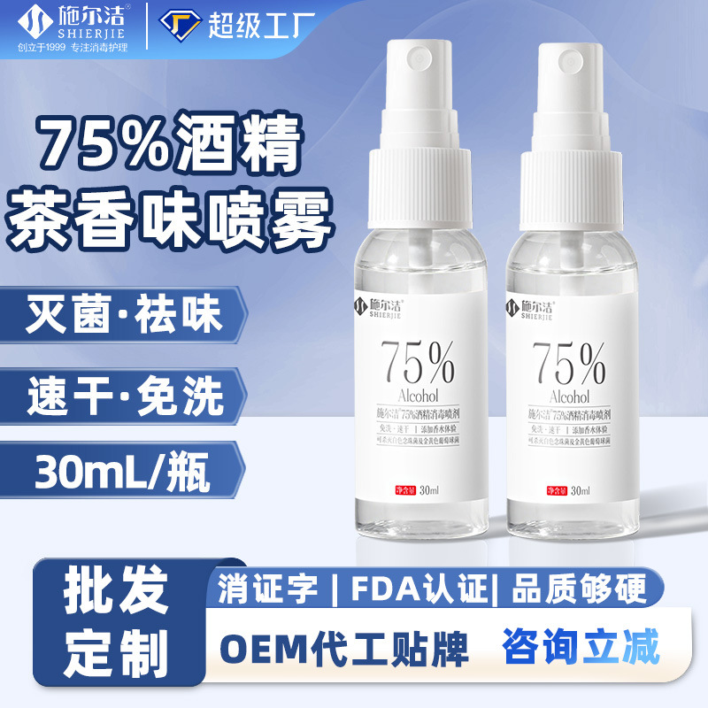 75% アルコールスプレー 30 ミリリットルポータブルホテル病院茶の香りの洗浄、滅菌、除染、消毒アルコールスプレー