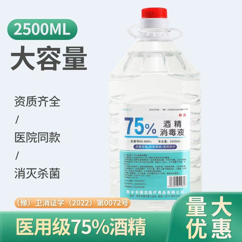 医療用アルコール75度2500MLバケツ入り無洗手消毒液病院学校殺菌防疫消毒水卸売り