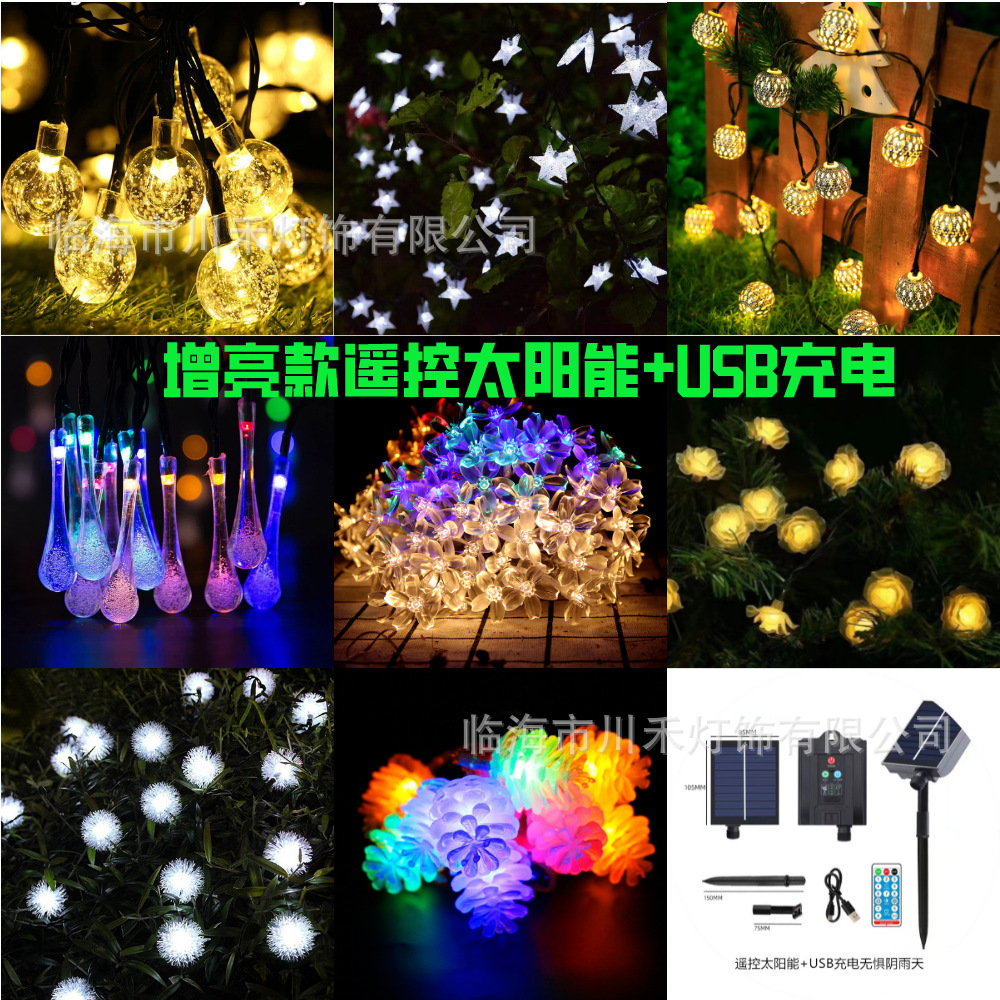 クロスボーダー爆型LED太陽光銅線灯結婚祝い満天星屋外防水リモコン木灯列電池箱灯