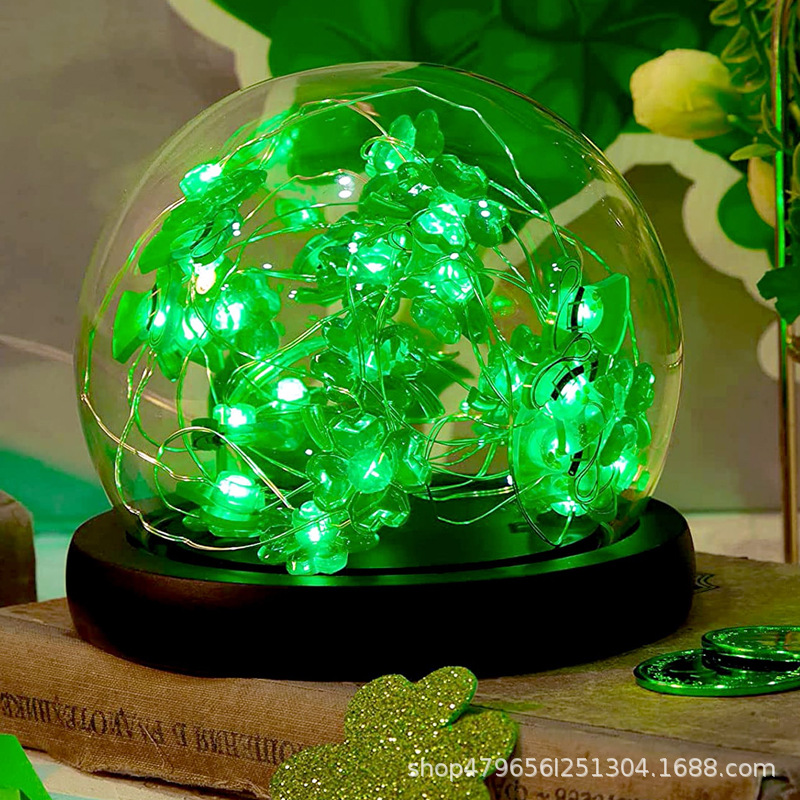 クロスボーダー聖パ節四葉草灯串聖パトリック帽形装飾灯led銅線灯緑帽子灯