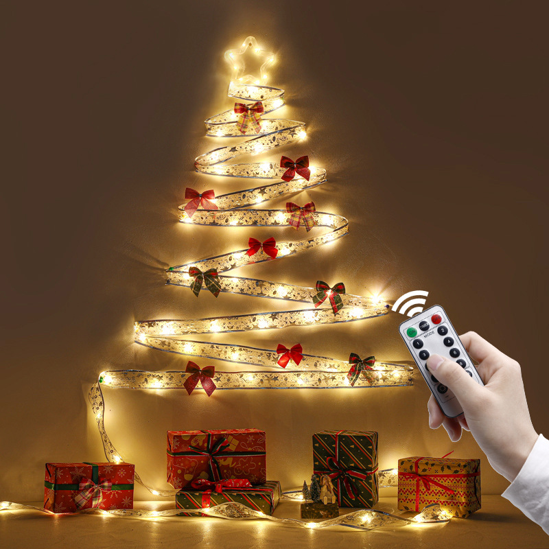 クリスマス発光サテンリボンライトストリングLEDイルミネーション室内クリスマスツリー雰囲気星飾り装飾吊り下げ飾り
