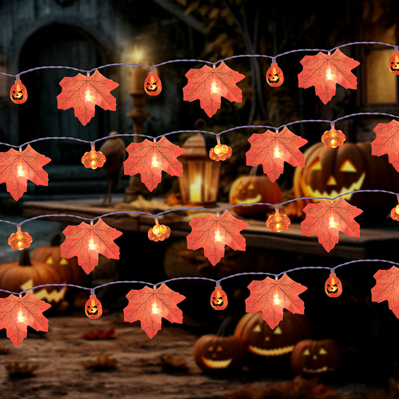 LEDカエデの葉のランプはハロウィンのカボチャのランプを並べます。