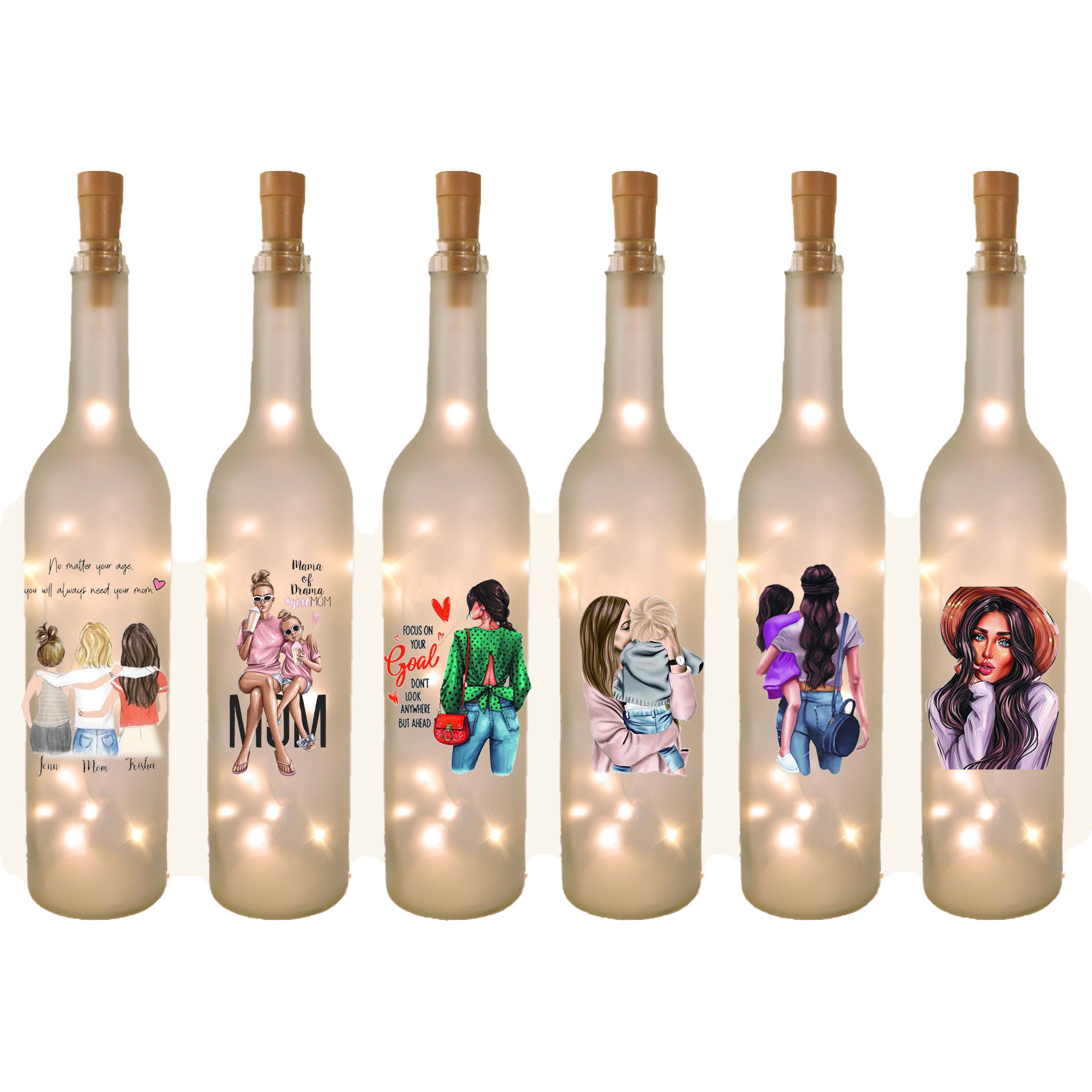 母の日装飾ギフトストラップライトガラス瓶ライトled銅線ストラップライト発光印刷図ワインボトル屋内置物