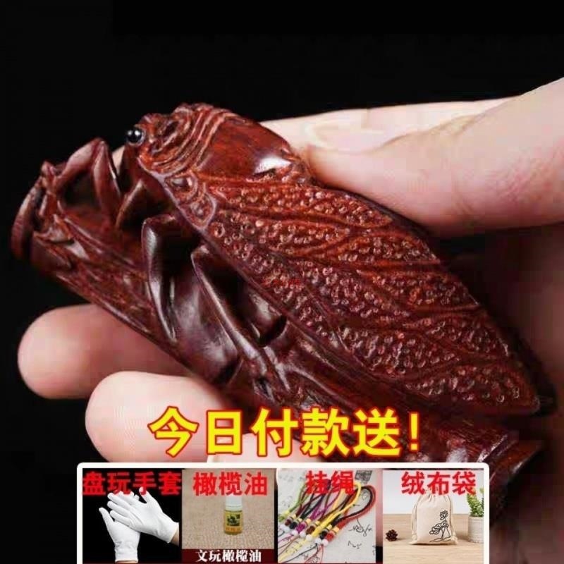 血檀紫檀竹蝉ハンドル部品車載工芸品置物アクセサリー彫刻クルミストラップ手串ペンダント木彫り。