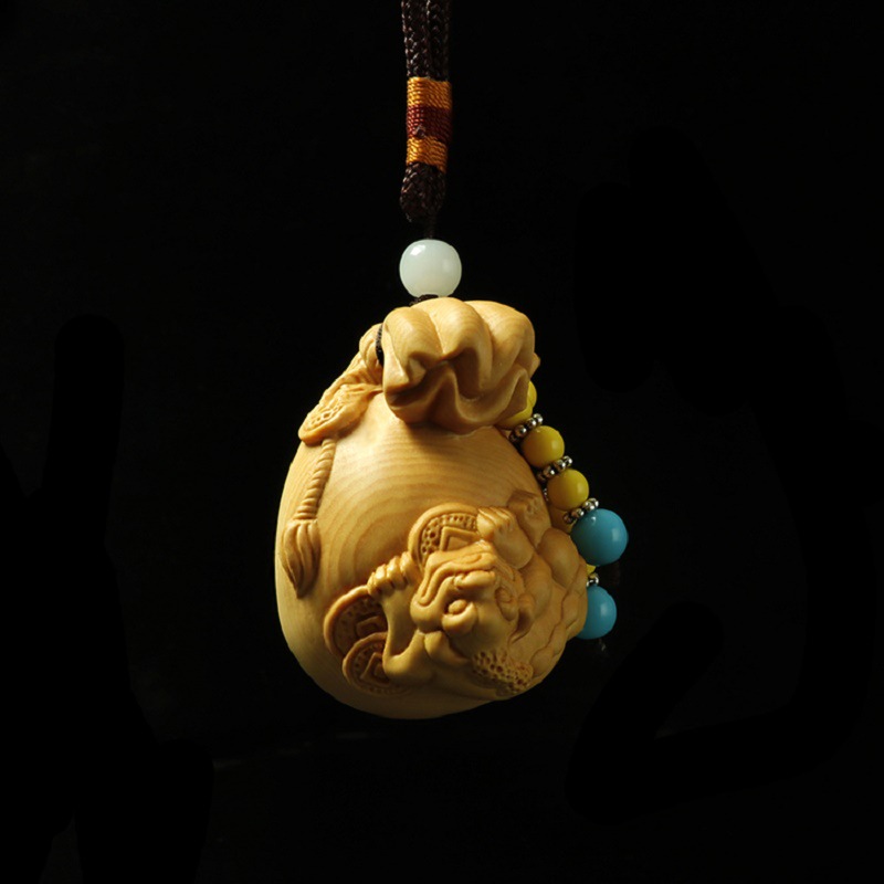桃木彫刻小銭袋血檀木福袋黄楊木/黒檀木diyアクセサリーペンダント