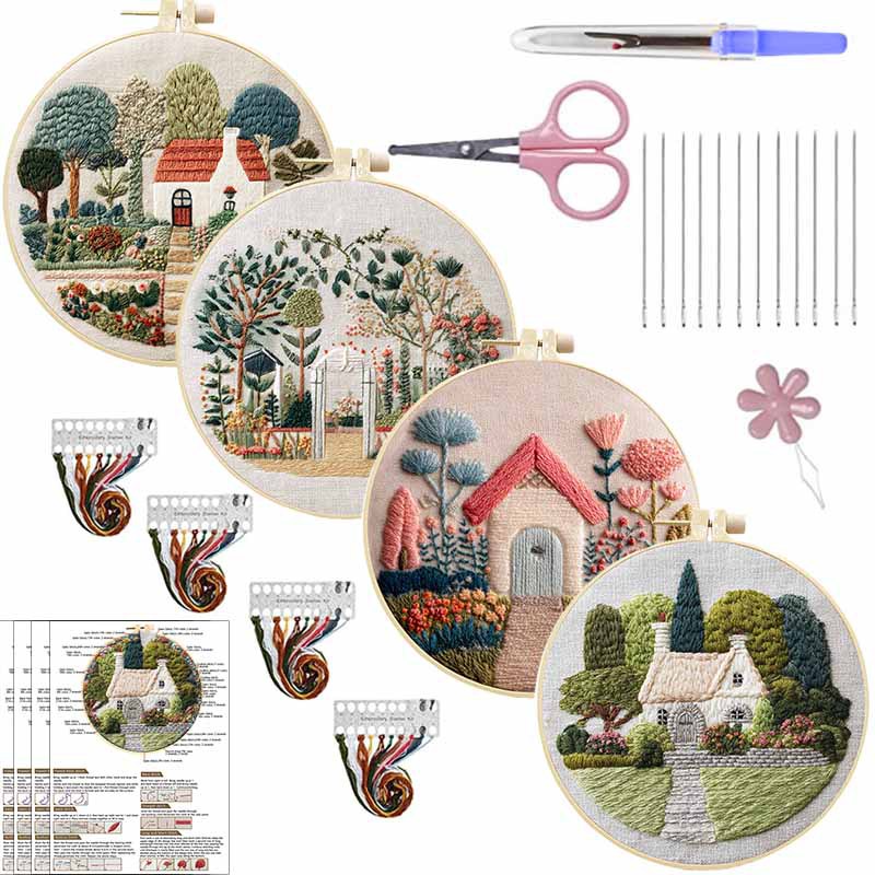 草花刺繍掛け絵手作り刺繍diy材料包魯刺国境を越えたアマゾン英語針糸セット