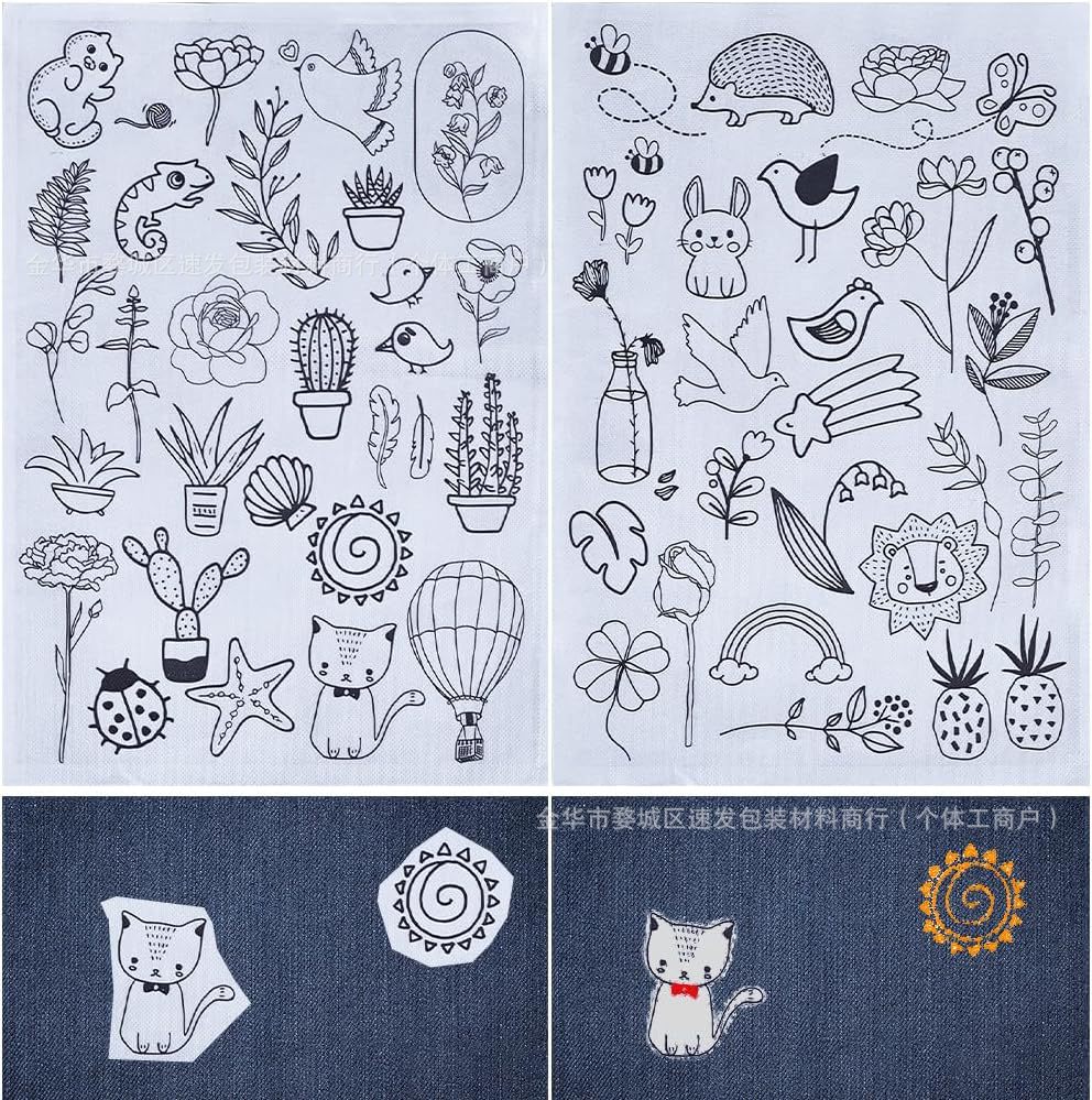 A4 花卉植物海洋動物手刺繍粘着シール水溶性安定剤不織布