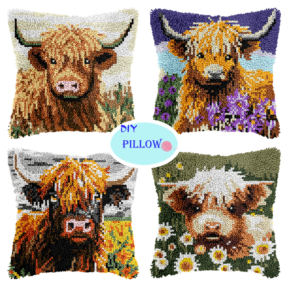DIY異形動物抱き枕ラッチフックキット、段刺繍手作りクッション、毛糸刺繍、材料パック付き