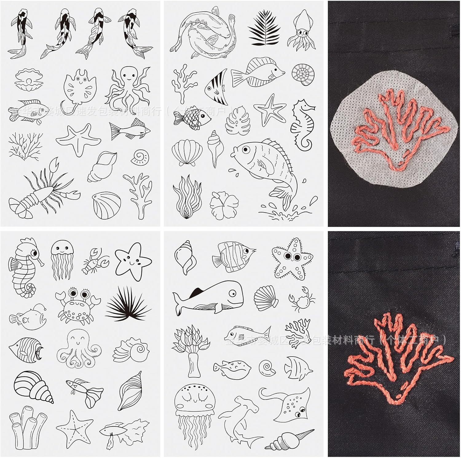 2025新品A4印刷可能海洋生物手刺繍自己粘着シールバックテープ刺繍用水溶性