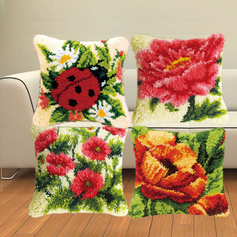 毛糸刺繍枕カーペット刺繍クッションクロスステッチ刺繍DIY素材パック花柄田園風新中式