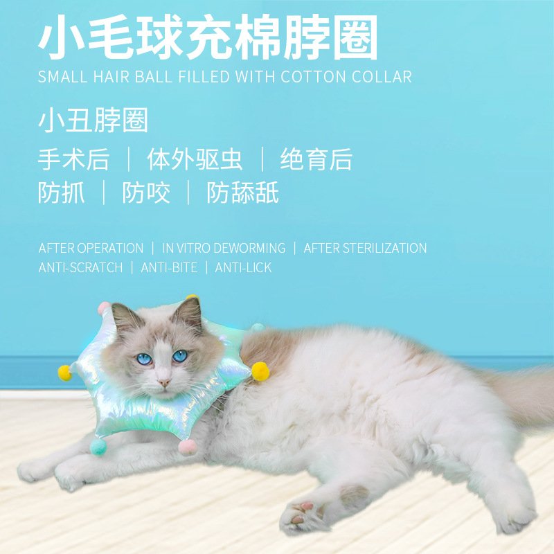 国境を越えた新商品の小さな毛玉がかわいい道化師の首輪術後の絶育後、なめないように保護します。