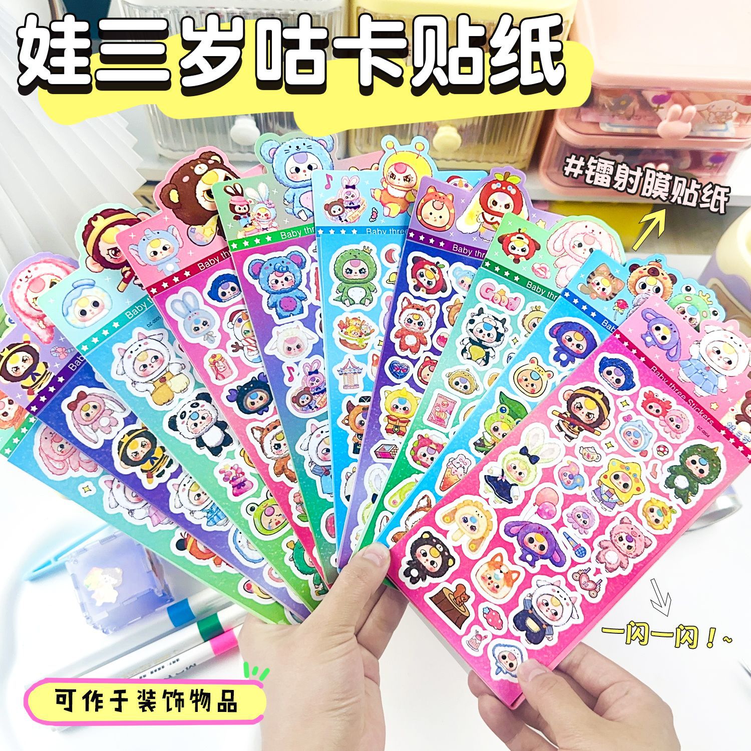 ステッカー200枚、繰り返しなしレーザーグカステッカーセット、韓国風ステッカーギフトパッケージ、かわいいグカイン