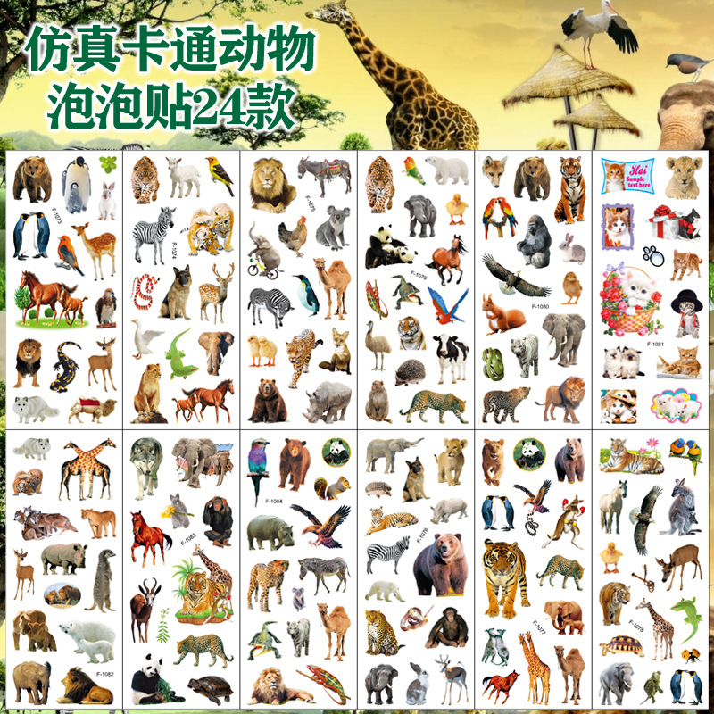 漫画リアル動物バブルステッカー子供漫画ステッカー立体PVCステッカークロスボーダー誕生日パーティープレゼント
