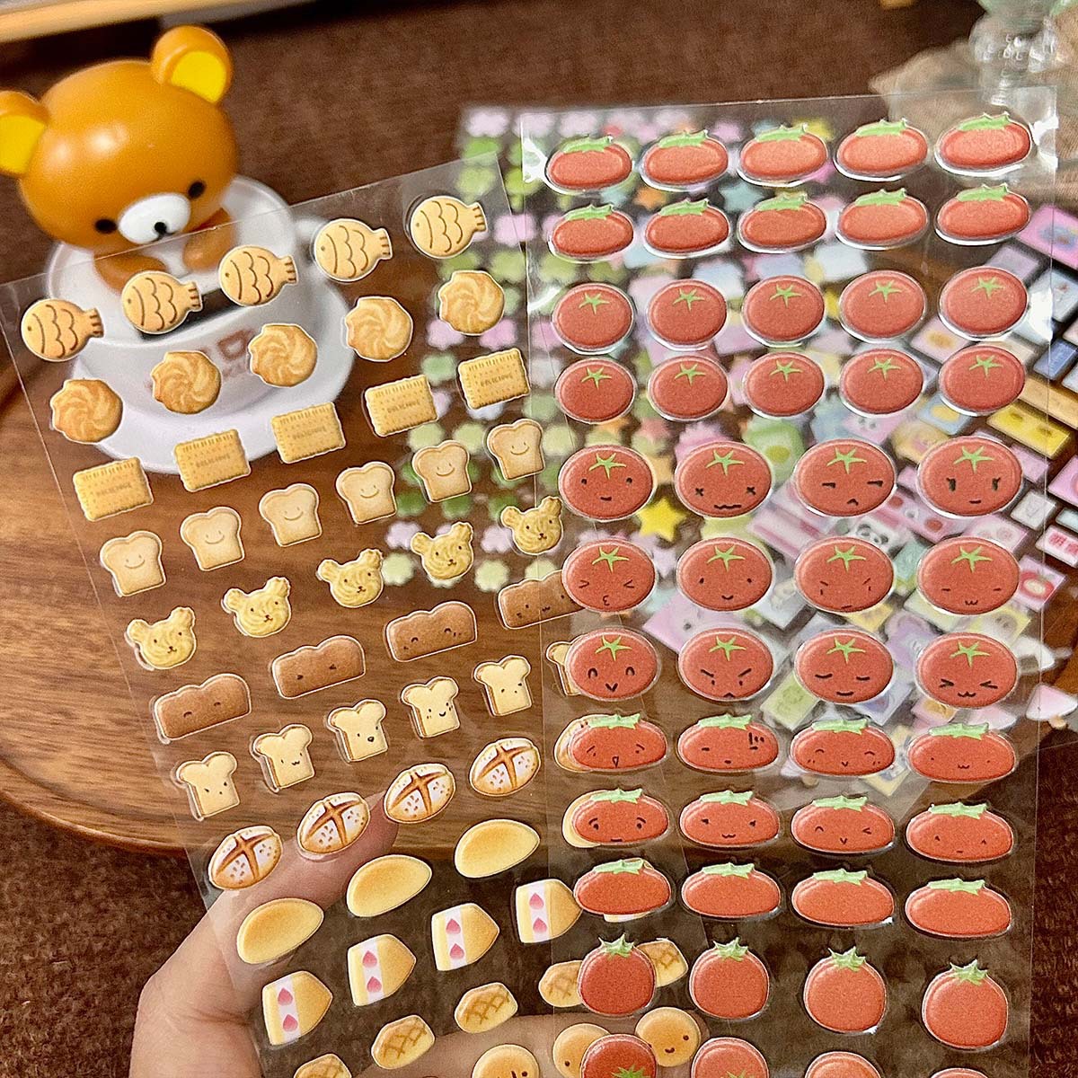 バブルステッカー韩系インスタ风手帐コラージュ携帯饰りお正月シール贴り絵デコ立体鱼板パン
