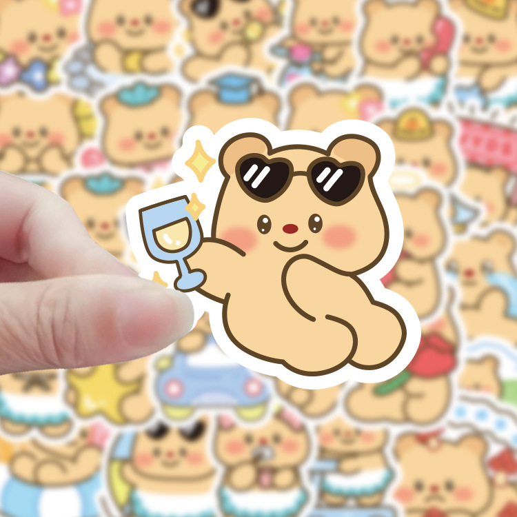 バター熊100枚シール黄色アニメ動物かわいい表情バッグ防水装飾手帳貼り絵卸売り