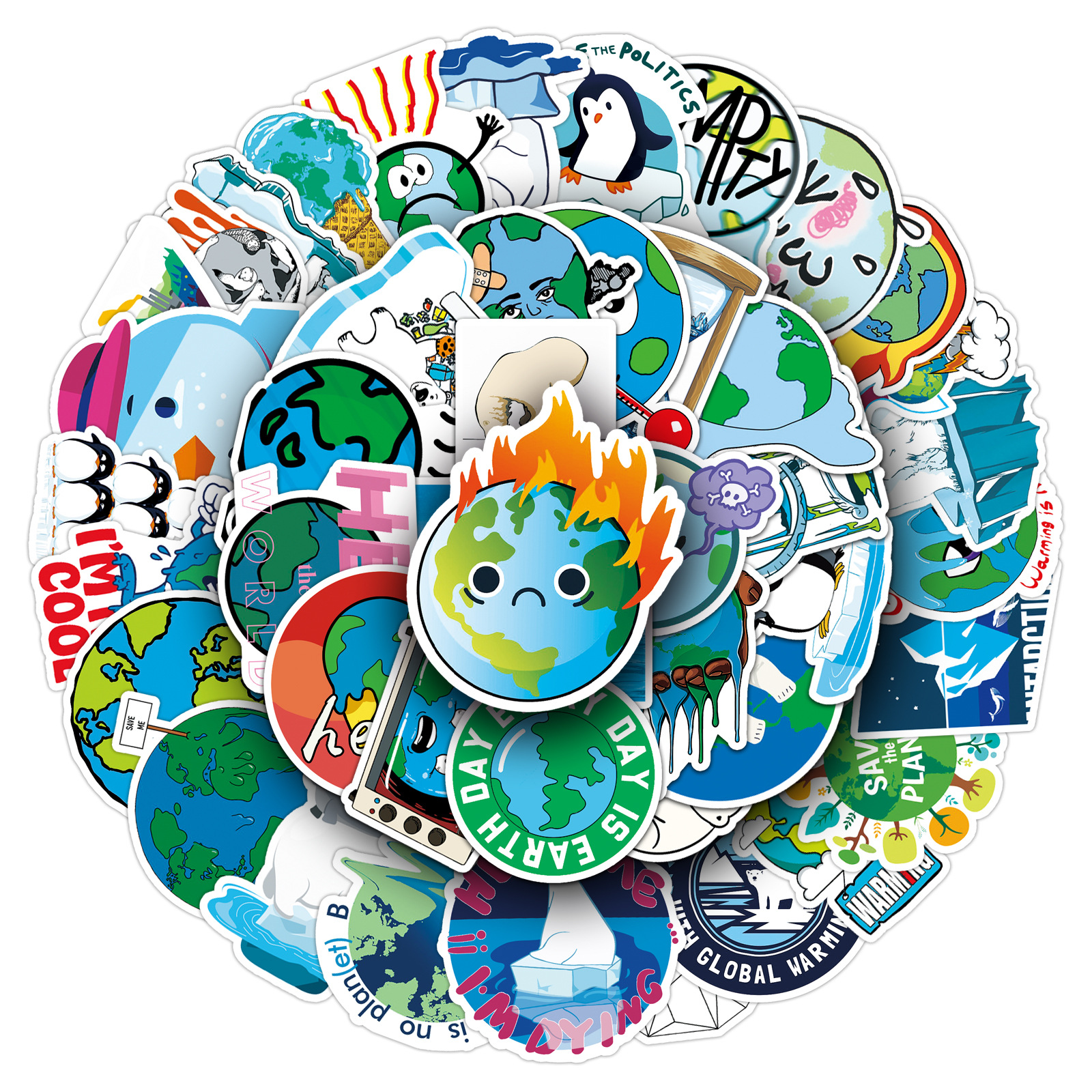 50枚の地球温暖化気候カラスステッカースーツケーススクータータブレットpc車漫画装飾ステッカー