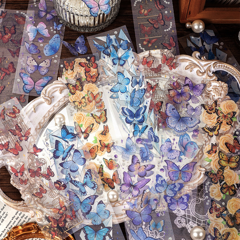 Zaomo PET 蝶ステッカー クリスタル蝶シリーズ シェルライトホットスタンピングハンドブック装飾造園素材ステッカーパック