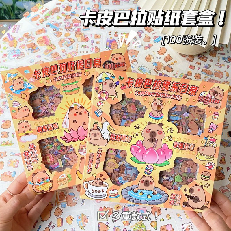 かわいいカピバラステッカー100枚防水pet子供学生diy手帳素材装飾文房具ステッカー