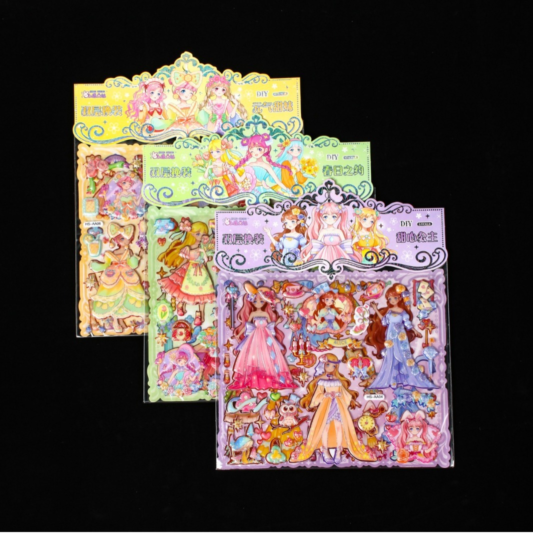 二層レーススカート立体バブルステッカー子供の創造的な装飾ステッカー二層プリンセスレーススカートドレスアップステッカー