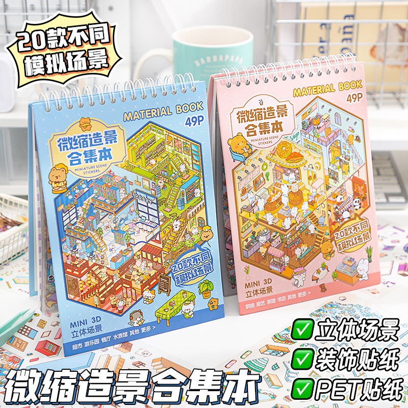 ミニチュア造園ステッカーコレクション子供の減圧手作りシミュレーションシーンステッカー 3D 立体キャビンコラージュパターン