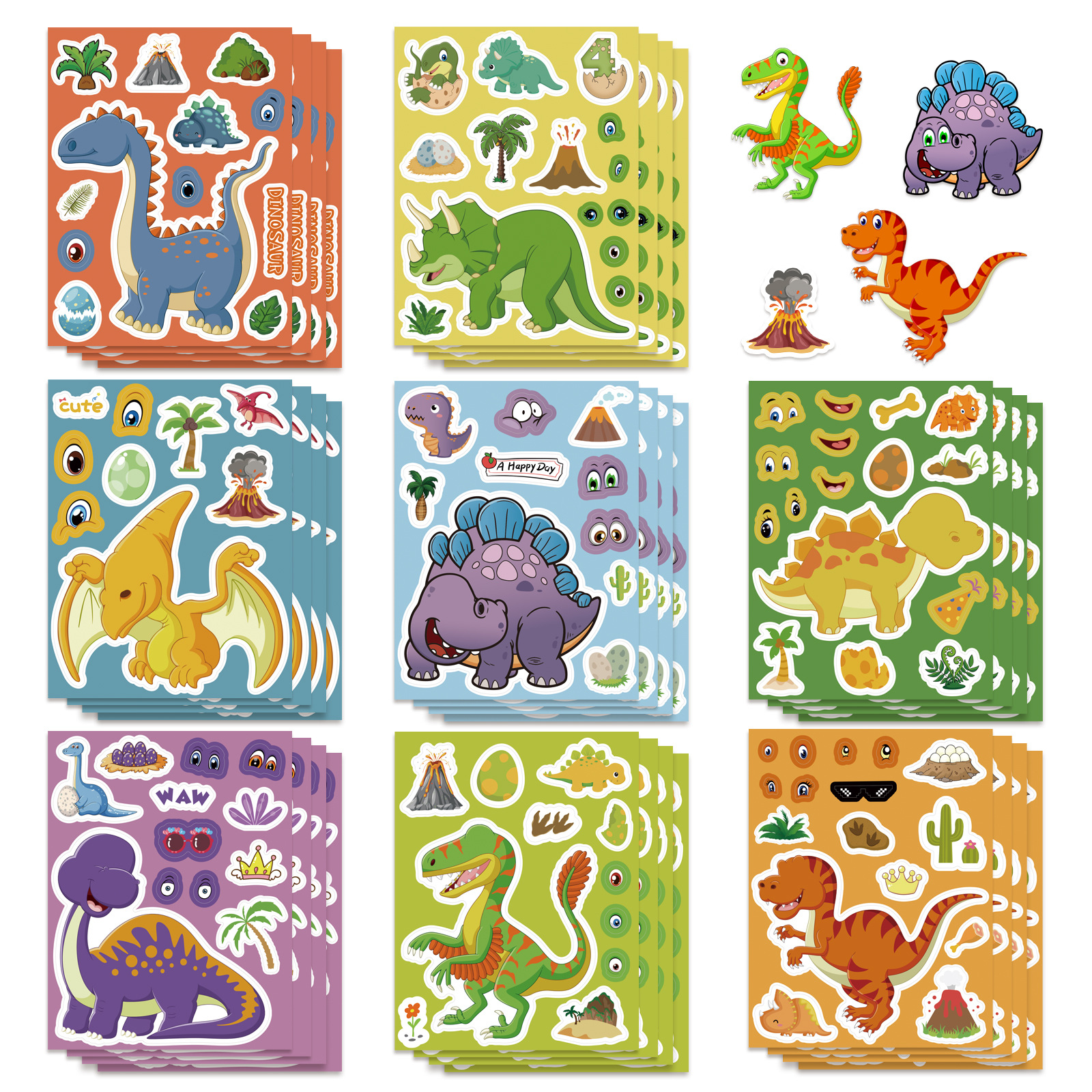 8枚のかわいい恐竜のジグソーパズルのステッカーの顔は手帳を貼ります。