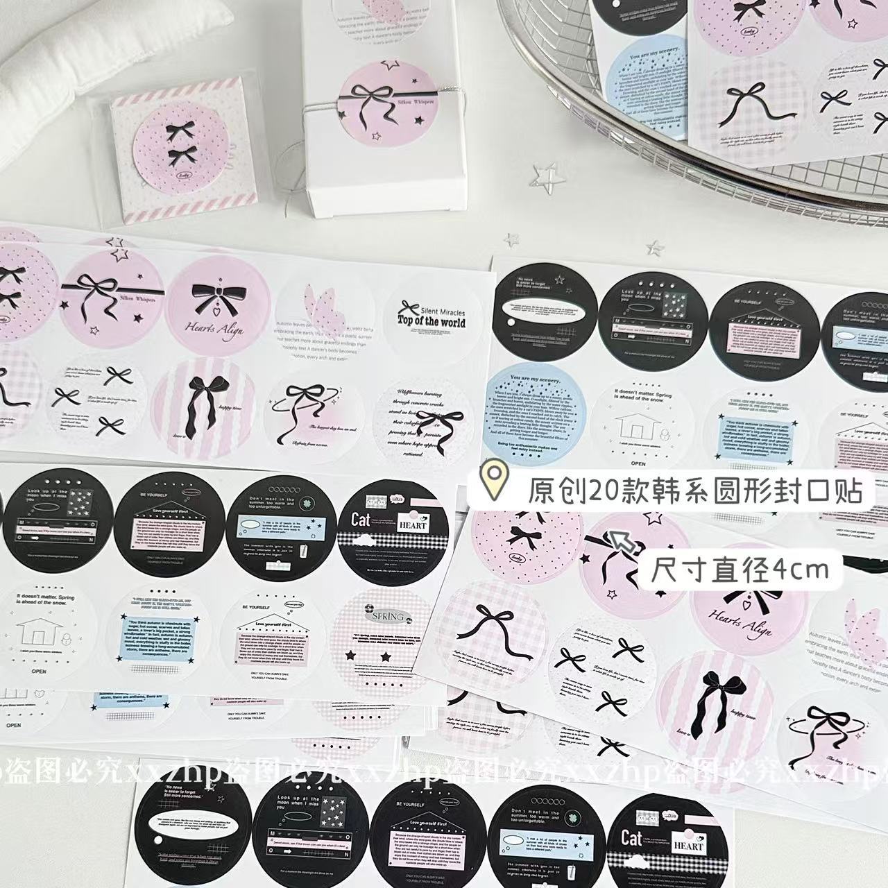 オリジナルデザインのリボン、シンプルな丸型粘着カード、シールシール、包装材、ベーキングドットシール