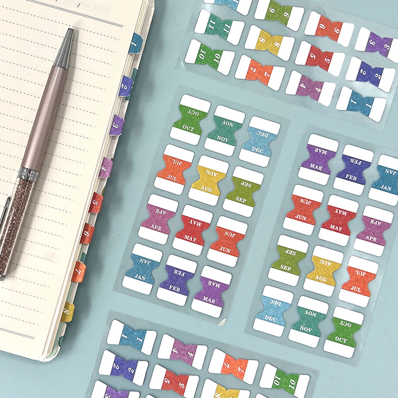 創意的なインデックスはセットのカラーストライプの数字の月のシールを貼ります。