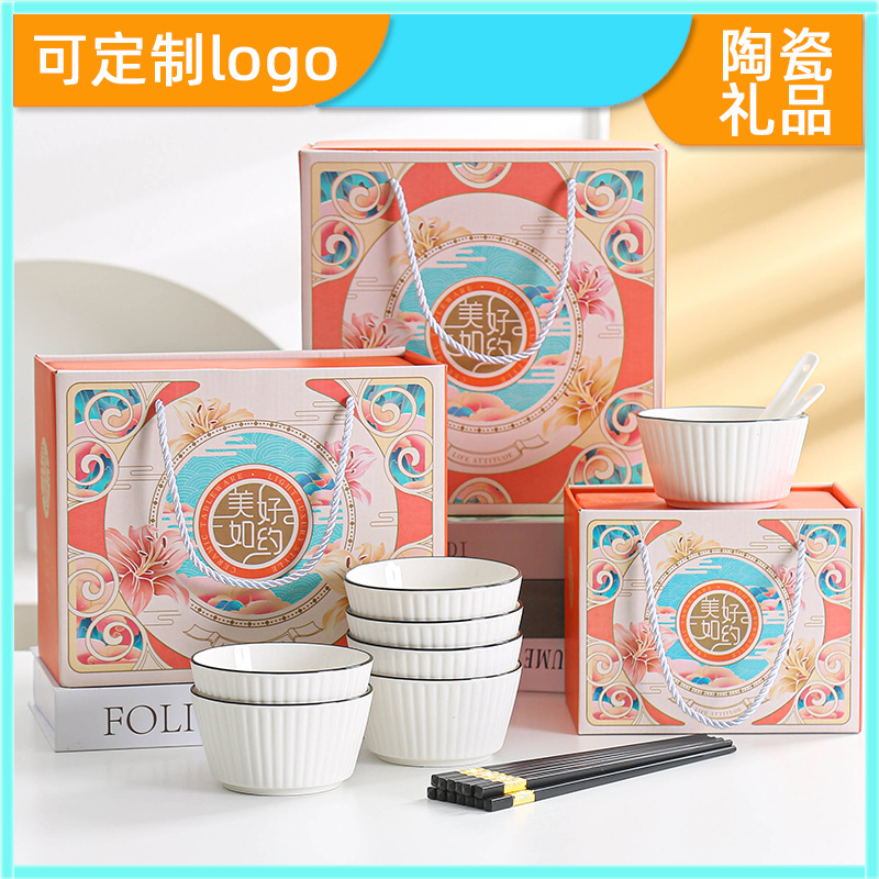 金辺礼箱ギフトボウル陶磁器食器セットオープンイベントプレゼント陶磁器食器皿セットセットボウル卸売り