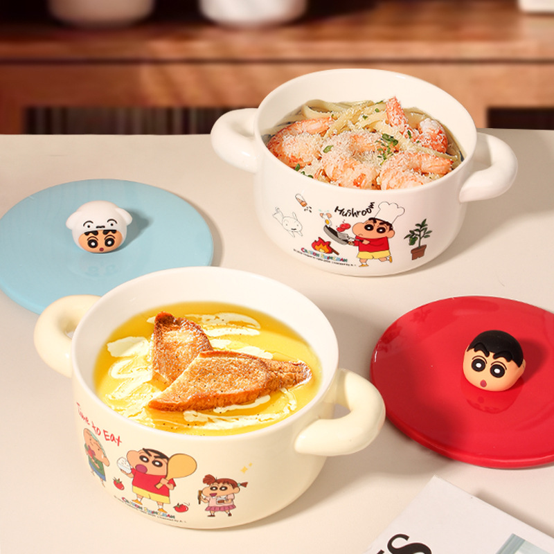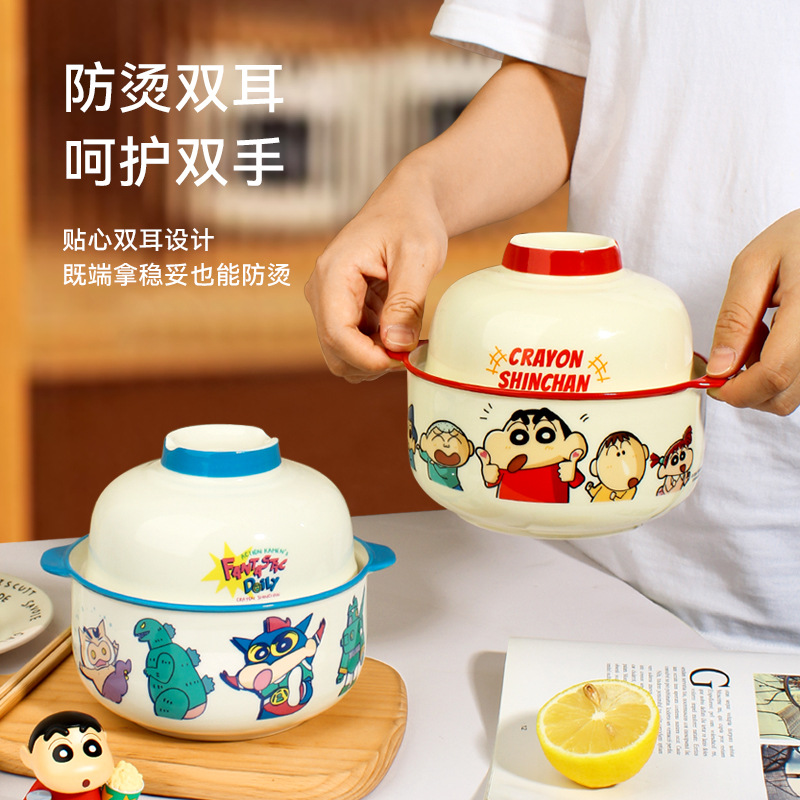 クレヨンしんちゃん インスタントラーメンボウル 蓋付き食器 かわいい漫画 電子レンジ専用 高価値 大容量 陶器ボウル
