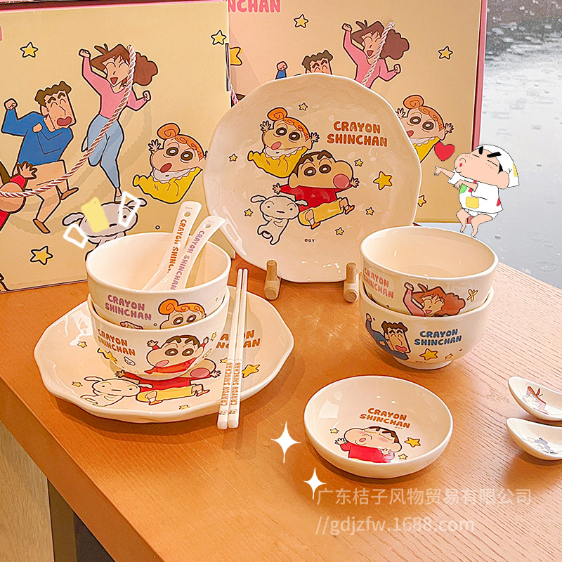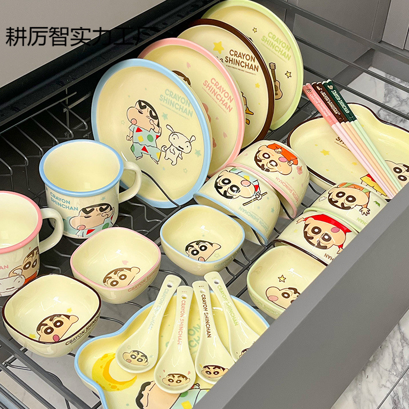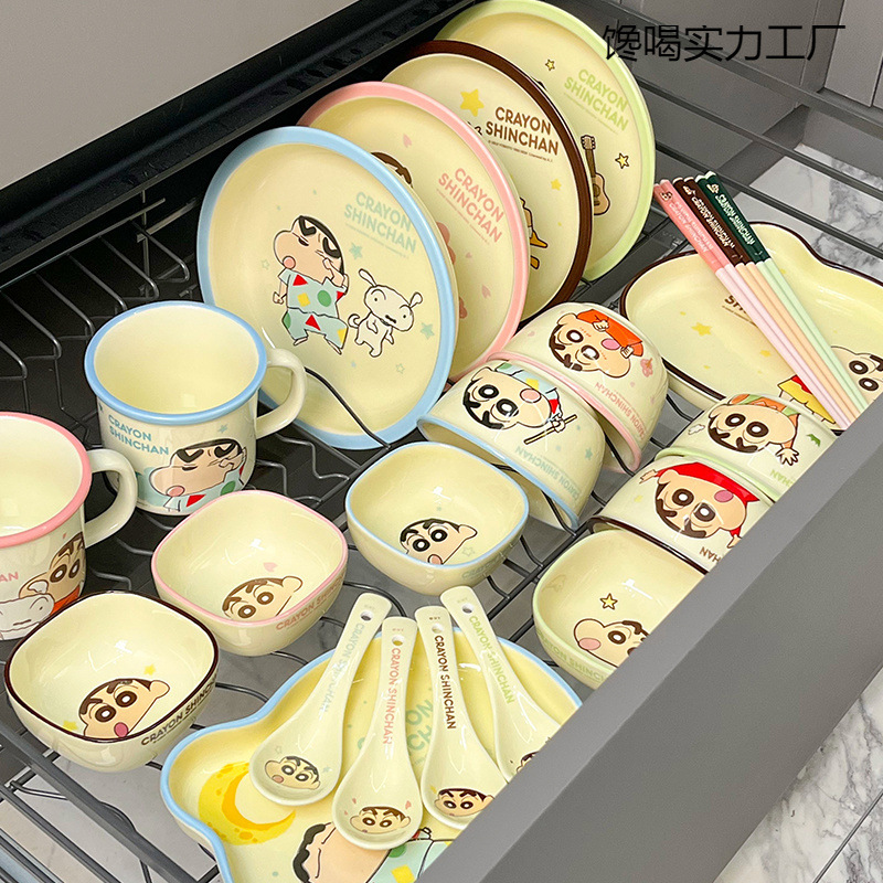 本物のクレヨンしんちゃん食器セット家庭用 2024 新しいセラミック食器高価値食器丼プレート