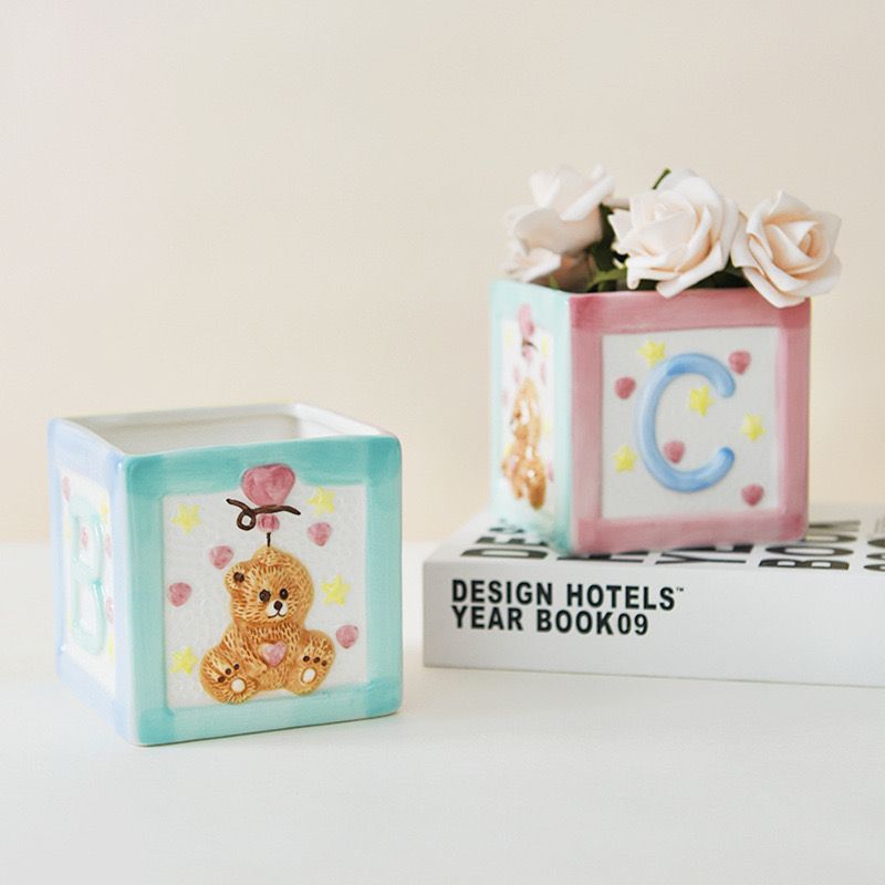 アメリカのかわいい熊の少女の心のアルファベットの陶磁器の多肉植物は四角形の缶を植えて筆の筒の花を並べて家庭に挿します。