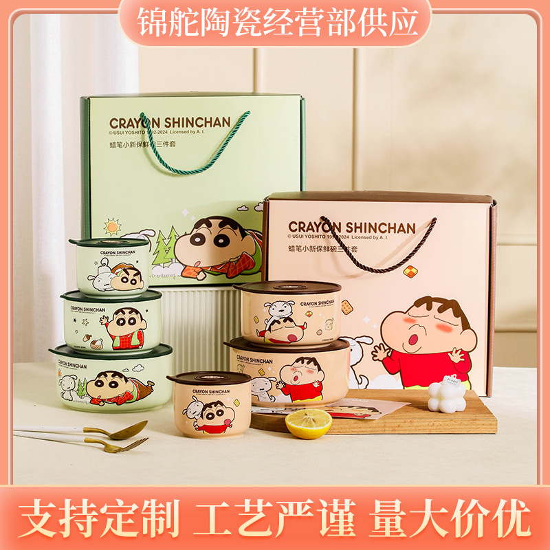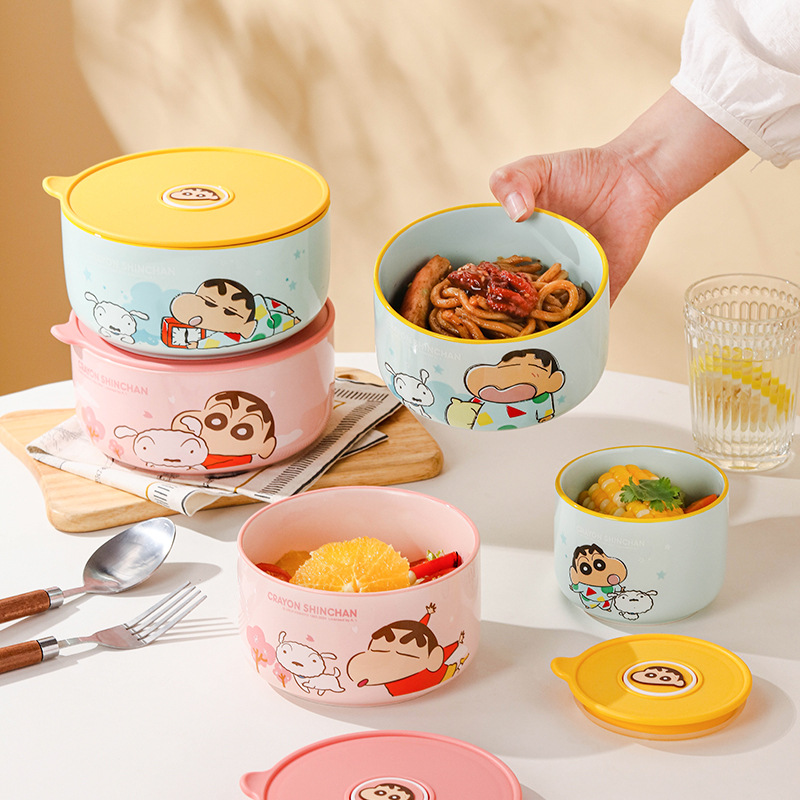 新しいクレヨンしんちゃんセラミック密封ボウル、蓋付き電子レンジ対応鮮度保持ボウル、漫画のかわいいギフト