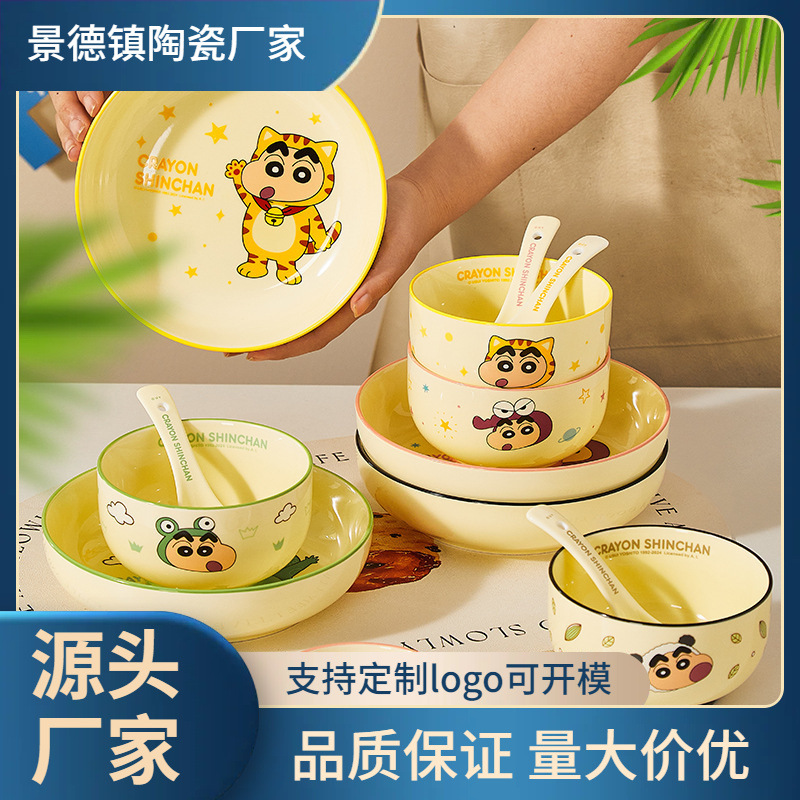 クレヨンしんちゃん共同ブランド丼陶器食器ボウルセットかわいい子供用ボウル高価値家庭用漫画陶器