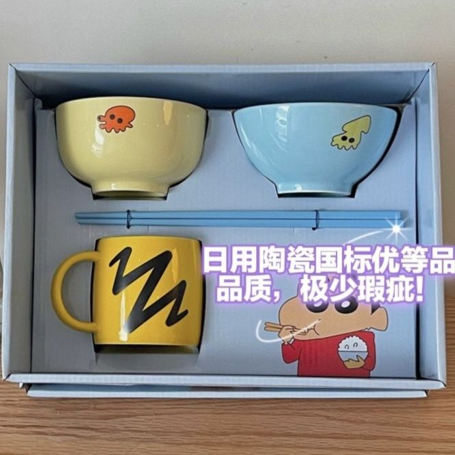 クレヨンしんちゃんセラミック食器ご饭碗可爱い皿高颜値碗皿セットギフトボックスセット新年プレゼント