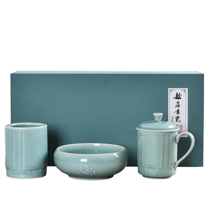 竜泉青磁の杯の教師の日の事務室の高級な贈り物の箱のスーツの企業のビジネスの贈り物の客用の筆の筒は湯飲みを洗います。