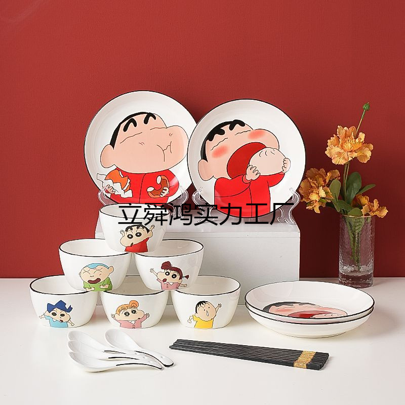 本物のクレヨンしんちゃん食器セット家庭用新しいセラミック食器高価値食器丼とプレート
