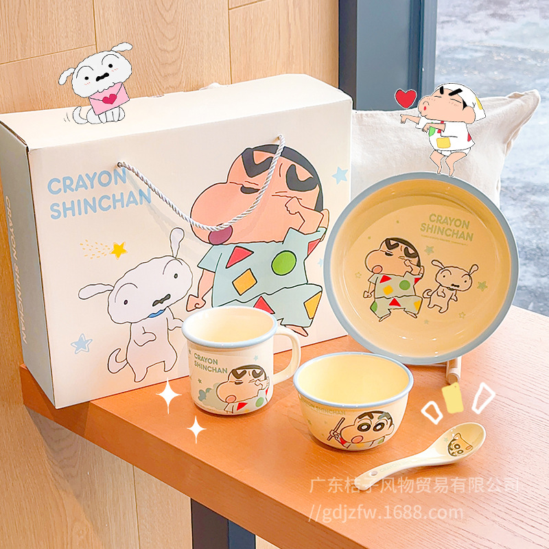 クレヨンしんちゃん家庭用陶磁器セット子供の新しい高颜値ご飯茶碗家庭用湯たんぽプレゼント箱誕生日プレゼント