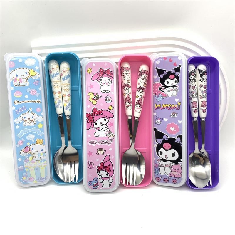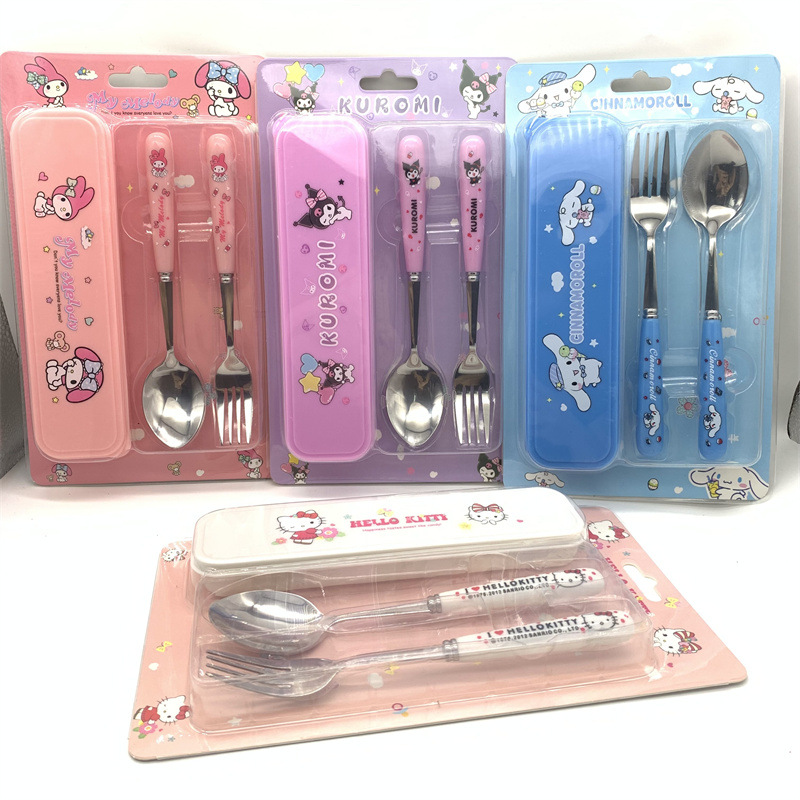 外国貿易アニメ三麗鴎kt食器セットクロミステンレススプーンフォーク大耳犬外出食器箱セット