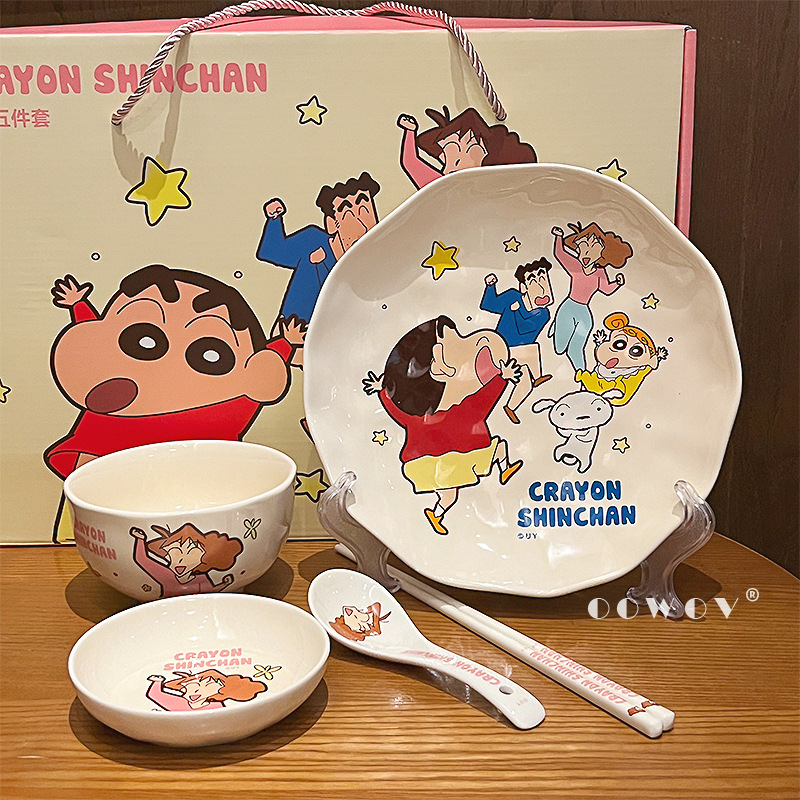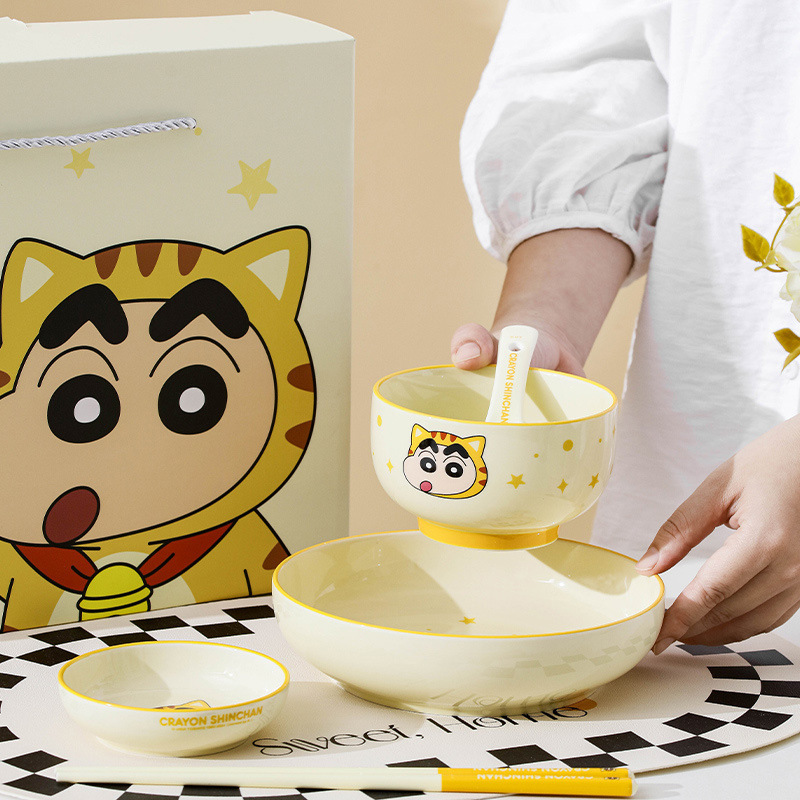クレヨンしんちゃん共同ブランド食器ギフトボックス新しい高価値子供用陶器ボウル、プレート、スプーン、箸、家庭用誕生日プレゼント