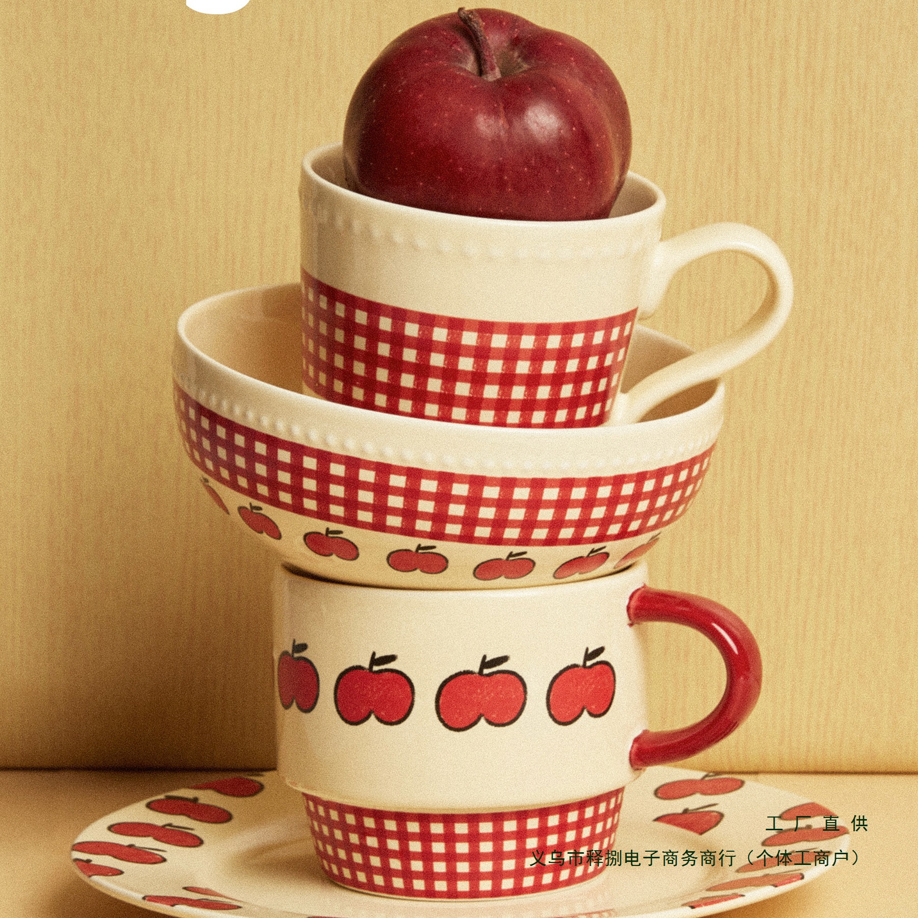 《哈哈苹果》手绘蜡笔可爱小狗圣诞新年陶瓷碗盘餐具其他绢花通用