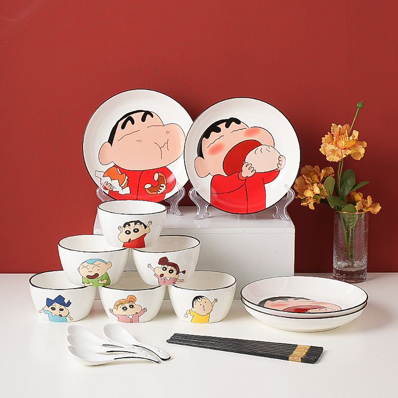 本物のクレヨンしんちゃん食器セット家庭用 2024 新しいセラミック食器高価値食器丼プレート