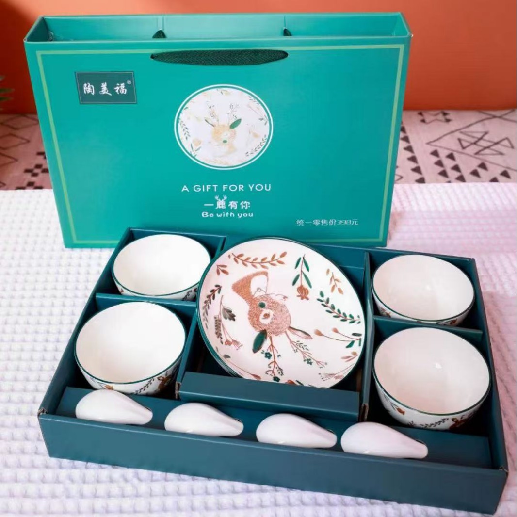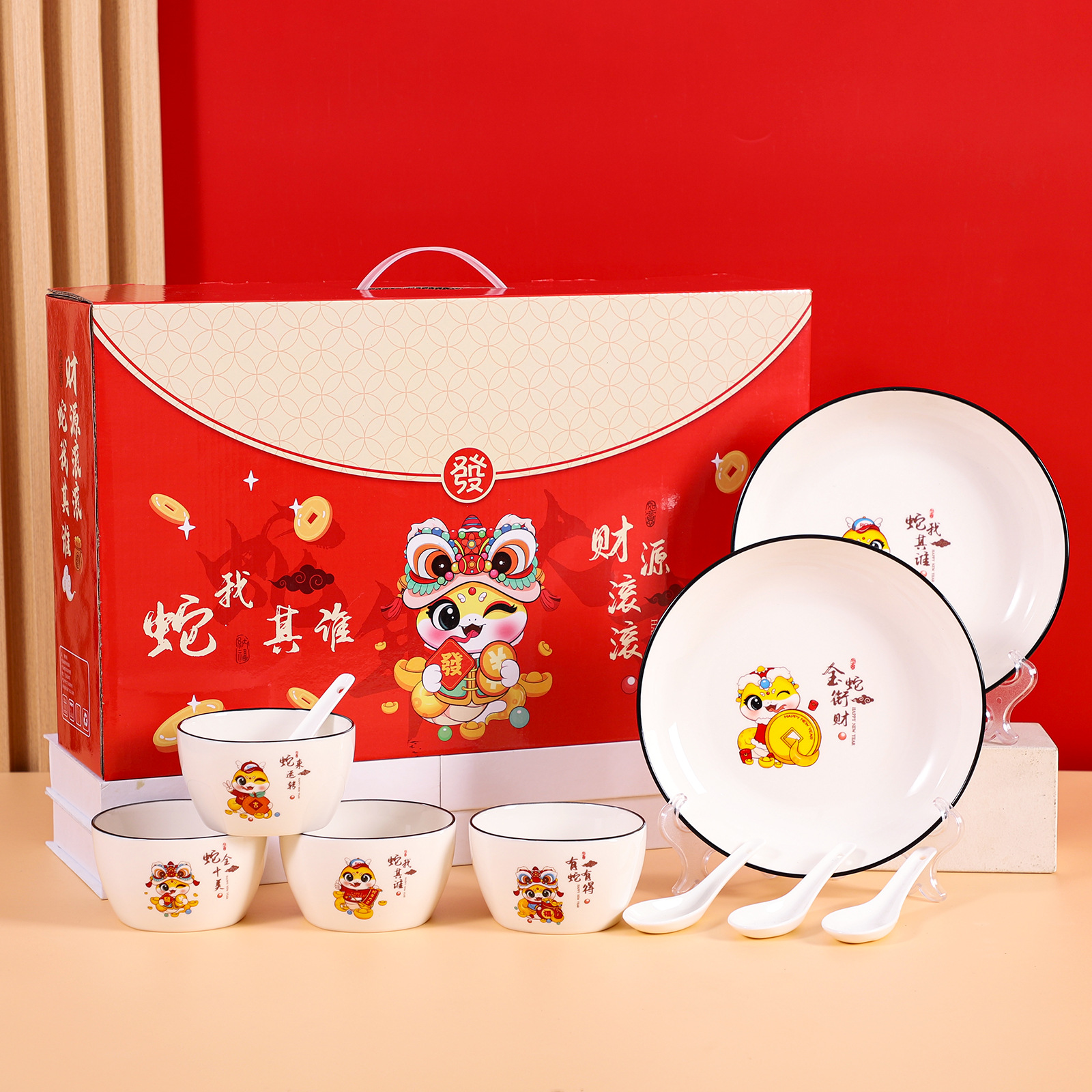蛇年陶磁器碗ギフトボックスセット家庭用食器セット陶磁器碗箸スプーンジュエリー銀行保険プレゼント