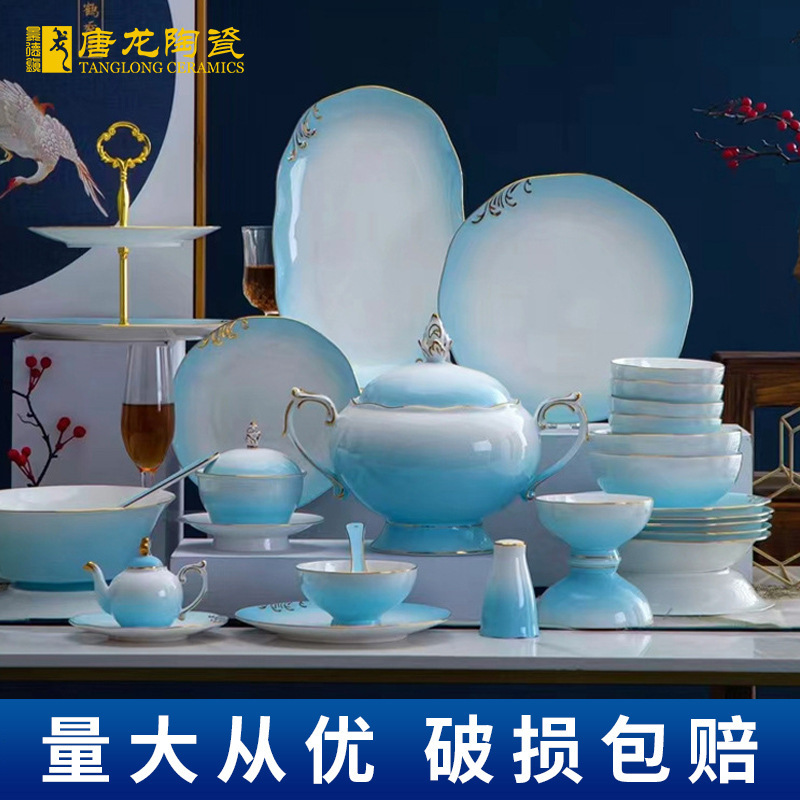 2023新型景徳鎮骨磁器食器セット家庭用高級感食器セット食器セット家庭用軽豪華サービス