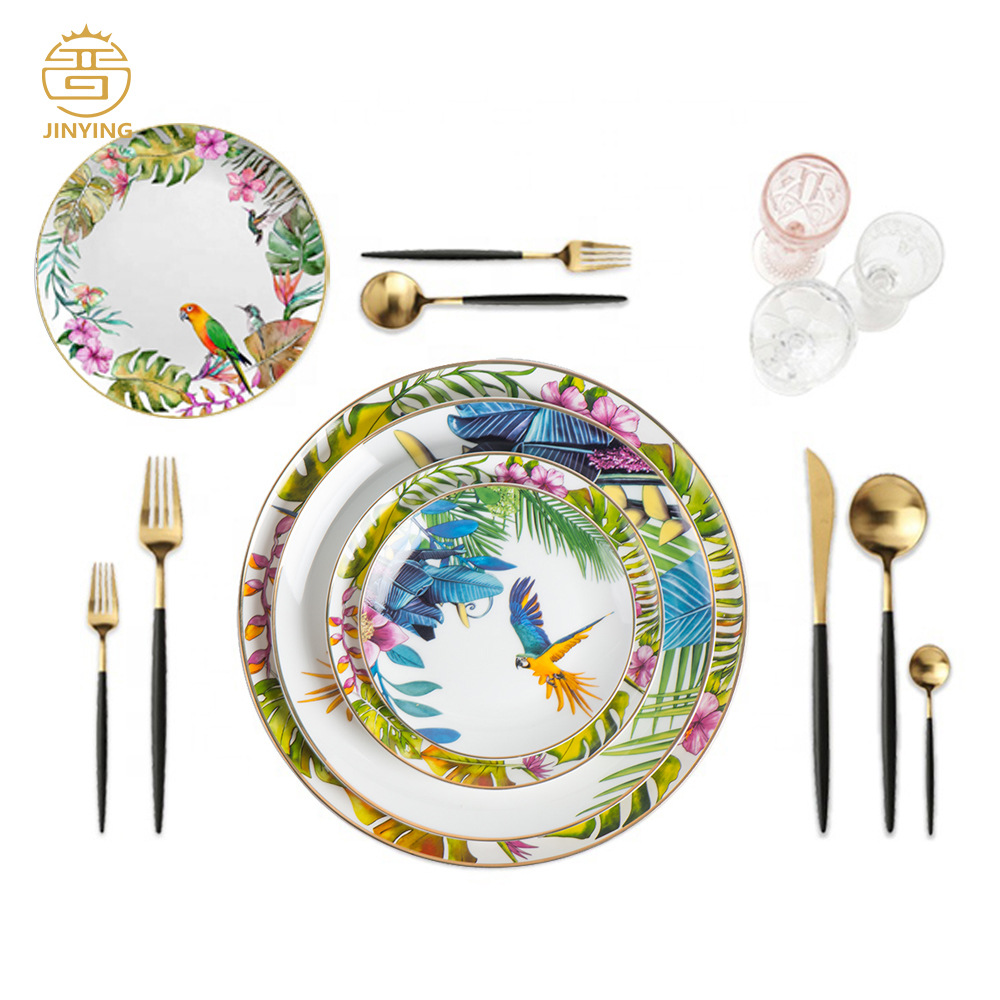 景徳鎮金辺陶磁器食器セット皿メーカー卸売り皿茶碗家庭用ホテル置物